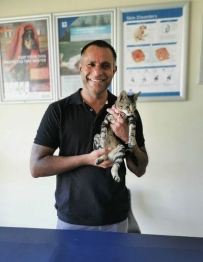 Dr P Moodley is our caring veterinarian with a general interest in small animal medicine and surgery. He graduated from the University of Pretoria in 1998. He practiced in the UK for 12 years. Upon his return to South Africa he worked in multiple clinics in Gauteng before starting his own Clinic in 2017. He strives to provide only the best quality care for his patients. His personal touch and genuine care shines through as he goes about his passion.